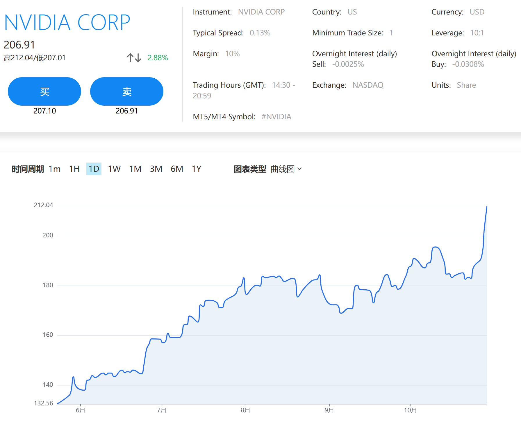 辉达股价周二盘中一度飙升6%,最终收涨4.98%,报201.03美元,股价首破200美元,市值攀升至4.89兆美元,距5兆关卡仅一步之遥。这波上涨反映投资人对执行长黄仁勋于GTC大会发言的高度兴奋,以及多项合作协议的激励。AvaTrade爱华官网提供MT5平台交易软件下载,交易辉达股票等多种热门产品,0佣金,低点差。