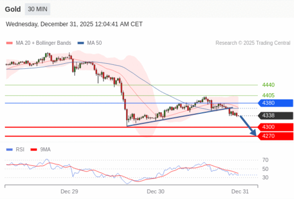 美联储会议纪要显示降息预期,纪要出炉后,黄金自周一重挫中反弹,有望写下1979年以来最佳年度表现。现货黄金上涨0.8%,报每盎司4364.70元;2月交割黄金期货上涨1%,报4386.30美元。AvaTrade爱华提供MetaTrader 5官网中文版下载,交易黄金白银等产品,0佣金,低点差。